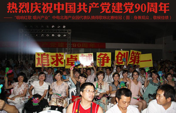 熱烈慶祝中國(guó)共產(chǎn)黨建黨90周年<br>——“唱響紅歌 唱興產(chǎn)業(yè)”中電北海產(chǎn)業(yè)園代表隊(duì)摘得歌詠比賽桂冠