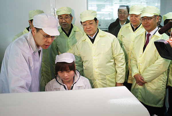 王兆國(guó)副委員長(zhǎng)仔細(xì)聽(tīng)取了園區(qū)建設(shè)情況匯報(bào),參觀了園區(qū)企業(yè)展品及生產(chǎn)車(chē)間,詳細(xì)了解企業(yè)的成本、技術(shù)、市場(chǎng)銷(xiāo)售、工人待遇、投資環(huán)境等情況,并向工作在企業(yè)一線(xiàn)的工人致以新春的慰問(wèn)和祝福。